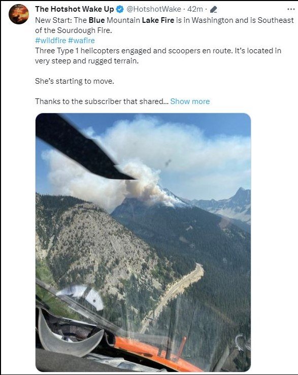 SR 20 North Cascades Highway is once again CLOSED between Newhalem (milepost 120) and Silver Star SnoPark (milepost 171) as of 3:30 yesterday. There is currently no estimated time for re-opening. WSDOT crews will remain in close contact with the Incident Management Teams to assess conditions on a daily basis. Please do not disregard closures, they are in place for your safety and the safety of firefighters. Cross state travel is possible using US 2, US 12 or I-90. For more information, check WSDOT pass report for SR20 https://wsdot.com/travel/real-time/moun ... ascade-Hwy The Blue Lake Fire is under a temporary flight restriction – no drone deployment is permitted. If you fly, we can’t.
