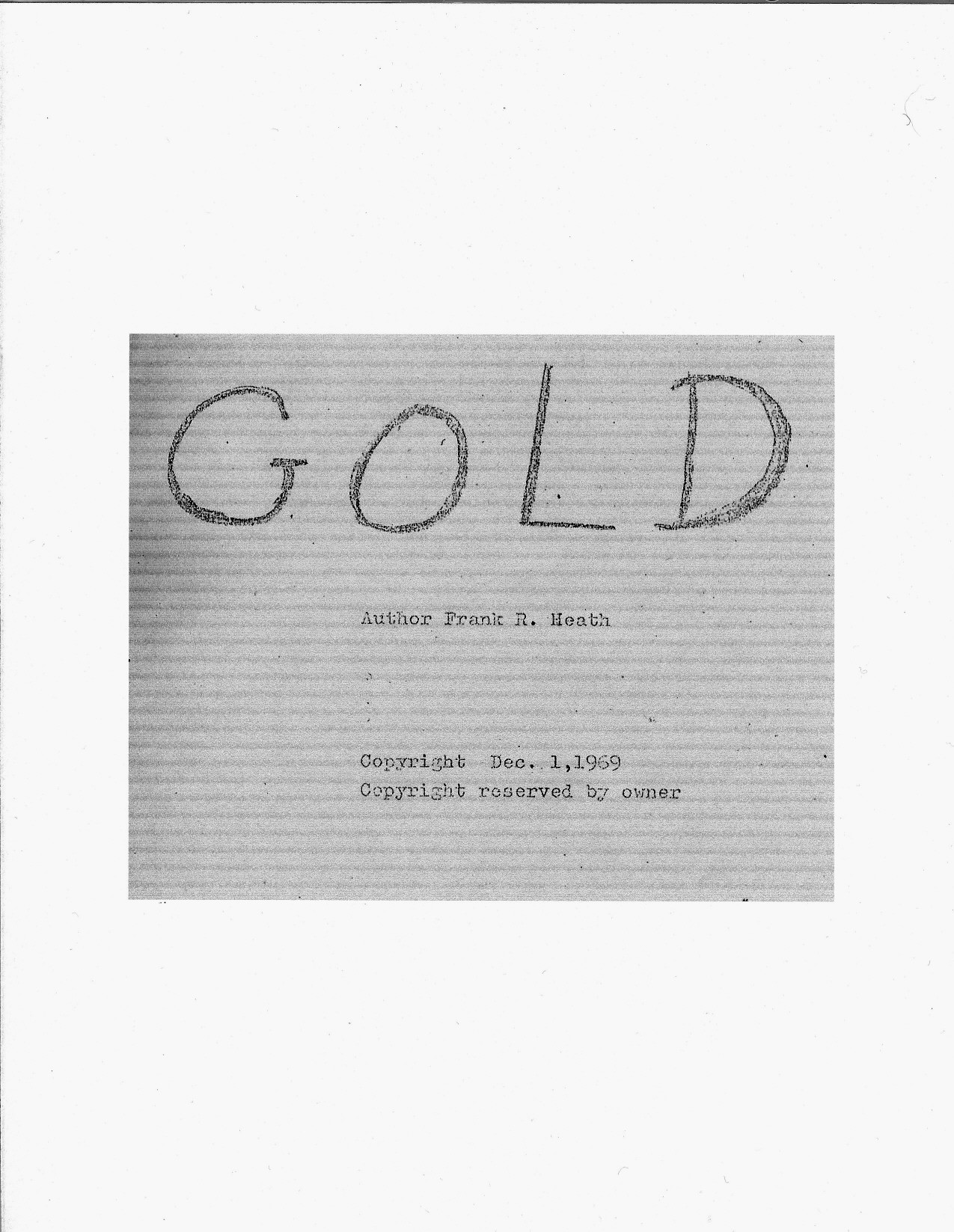 GOLD by FRANK HEATH FRANK Austin gave me the duty of preserving his grampa's book. This book documents the gold rush of the Methow Valley.