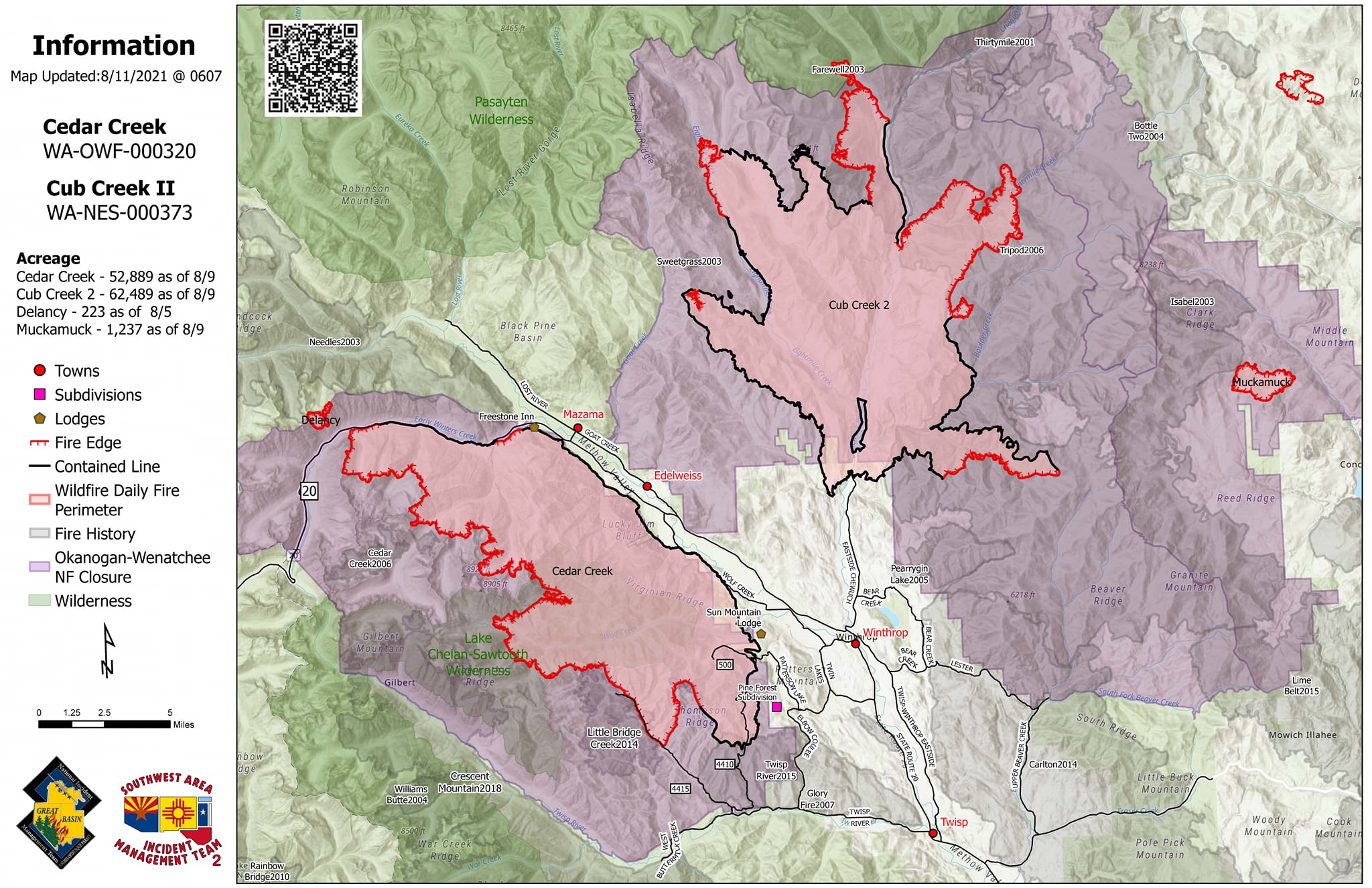 Winthrop, WA — The Cedar Creek, Cub Creek 2 and Delancy Fires are burning on the Okanogan-Wenatchee National Forest and public and private lands within Okanogan County.