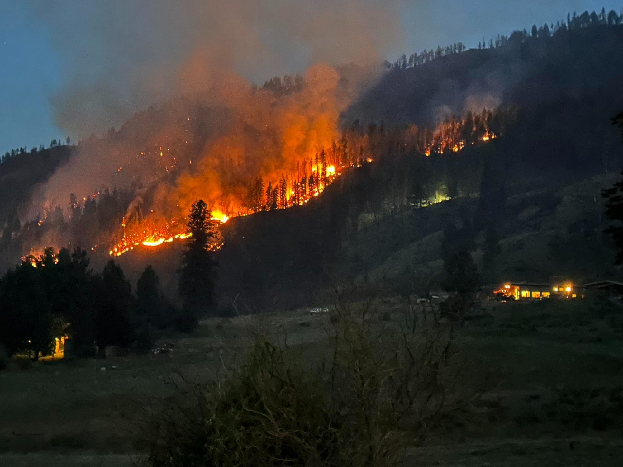 Fire is moving south over the ridge into Gold Creek near 134 Gold Creek Road. Winds are predicted to increase this afternoon. Persons should be aware the fire is moving towards Gold Creek Rd and South Fork Gold Creek Rd. Roads affected Gold Creek, Middle Fork and South Fork.