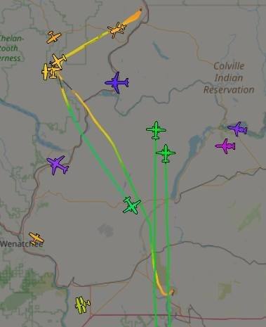 9 aircraft on scene, 2 more aircraft inbound from Moses Lake. They are scooping down by Pateros.