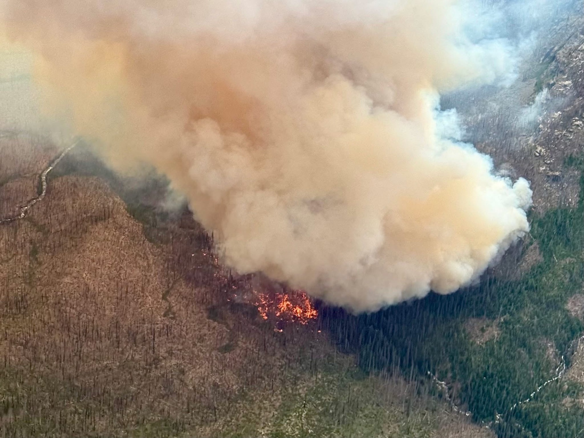“This is an extreme tough piece of ground with all the dead and down timber from the 2015 Wolverine Fire and ten years’ worth of thick regeneration,” said Holly Krake, Entiat-Chelan District Ranger for the Forest Service. “The smokejumpers and pilots are doing everything they safely can to keep fire from becoming established on the east side of the Entiat River and down in Snowbrushy Creek.”