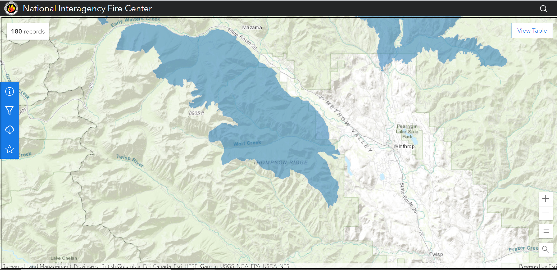 All current wildfires (larger filesize - 12.8 mb)... Previous perimeter files were selected for Methow Valley and small filesize