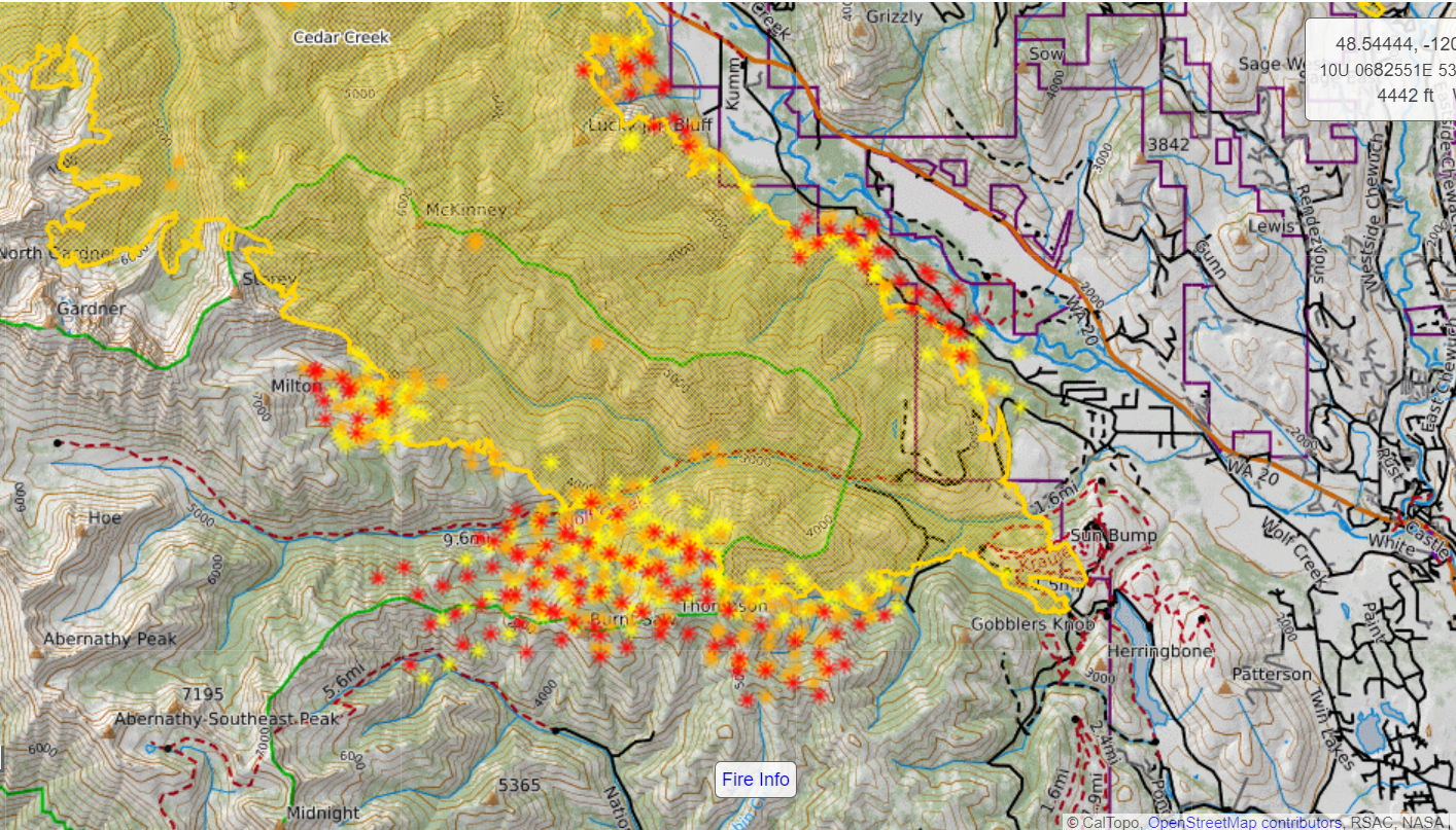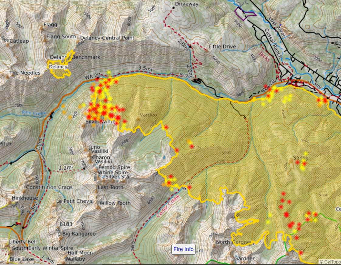 Cedar Creek Fire 07/30 morning perimeter... Lots of growth from yesterday afternoon slopping over Thompson Ridge...