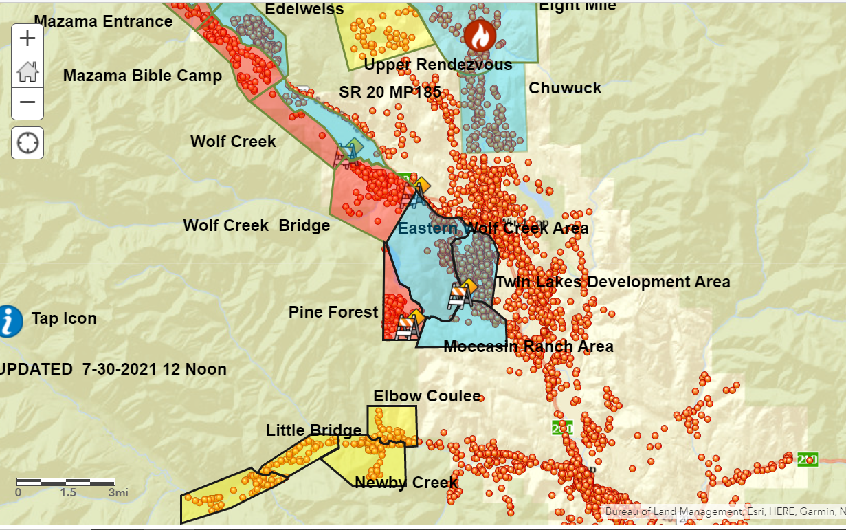 Closures: A Forest Area Emergency Closure has been issued by the Okanogan- Wenatchee National Forest which closes the use of multiple roads, campgrounds, and trails. Please see the enclosed links to the Forest Closure Page. https://bit.ly/3zsRtuw and map: https://bit.ly/3wZ2y50 The documents are also available on Inciweb and Facebook.