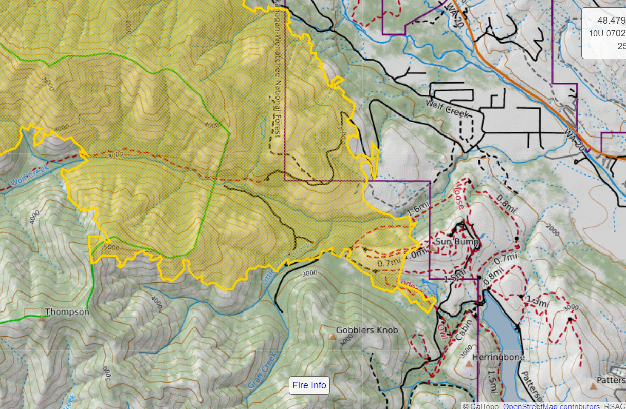 Closures: A Forest Area Emergency Closure has been issued by the Okanogan- Wenatchee National Forest which closes the use of multiple roads, campgrounds, and trails. Please see the enclosed links to the Forest Closure Page. https://bit.ly/3zsRtuw and map: https://bit.ly/3wZ2y50 The documents are also available on Inciweb and Facebook.