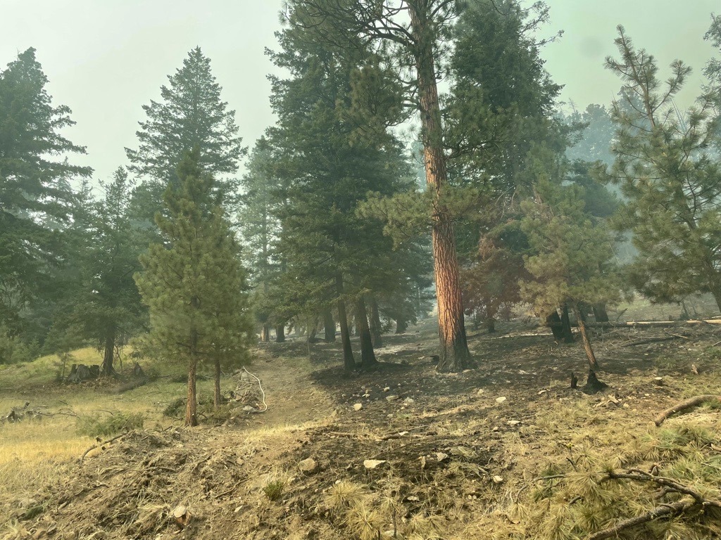 Cedar Creek Fire July 27, 2021 - Near the Sun Mountain Lodge the fire slipped into the marshy area yesterday evening. Lots of smoke was visible today, from down logs and stumps burning on the forest floor. However, there was minimal progression of the fire in this location due to the successful control actions from engines, helicopter and hand crews. The fire is currently holding below the 500 road. Some smoke is still visible in the area of Sun Mountain Lodge but is is not a factor at this time as containment efforts are being effective.