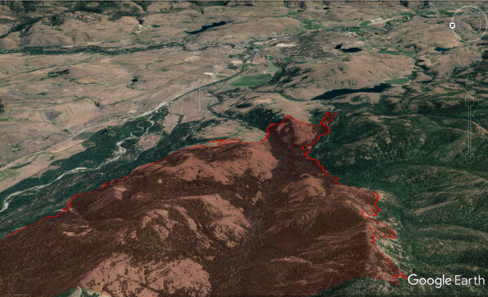 Morning 7/27 NFIC fire perimeter data layer overlaid on Google Earth... (experimenting with Google Earth)