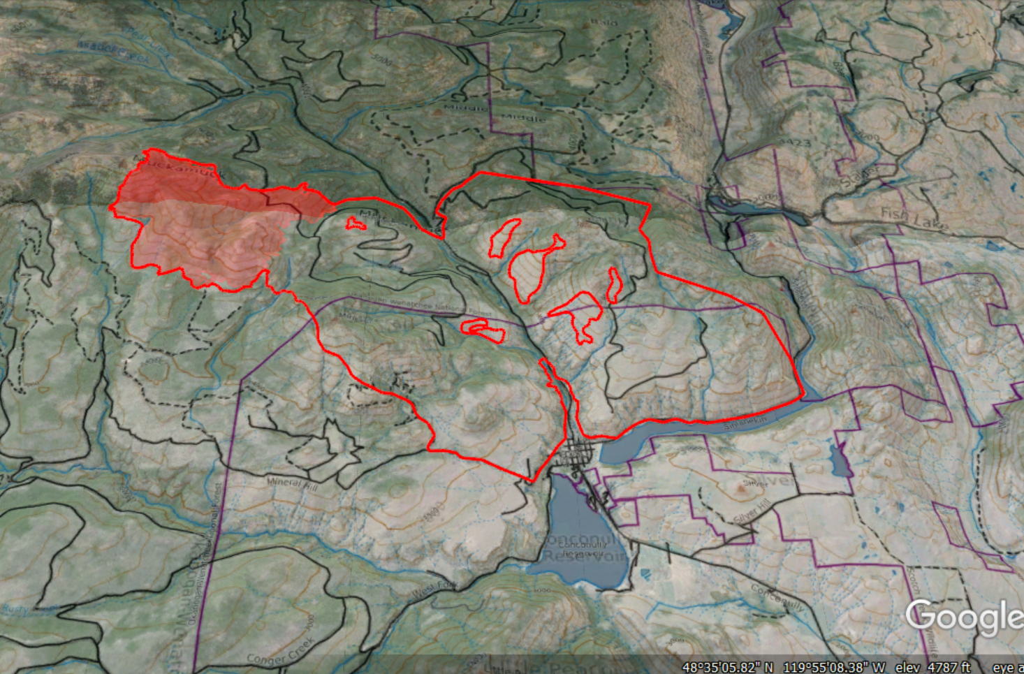 Current Situation: The gusty westerly winds that were predicted for the area materialized in the early afternoon yesterday. Red Flag Warning conditions brought extreme fire behavior as winds pushed the fire to the east. The fire quickly spotted across the 38 Road into receptive fuels and ran 4 ½ miles in an hour. This movement to the east prompted several Level 3 evacuations to be declared by Okanogan County Emergency Management prior to the fire moving into the Conconully community last night. Fire behavior is expected to remain active today. The Muckamuck Fire is the priority fire of the four currently managed by the incident management team.