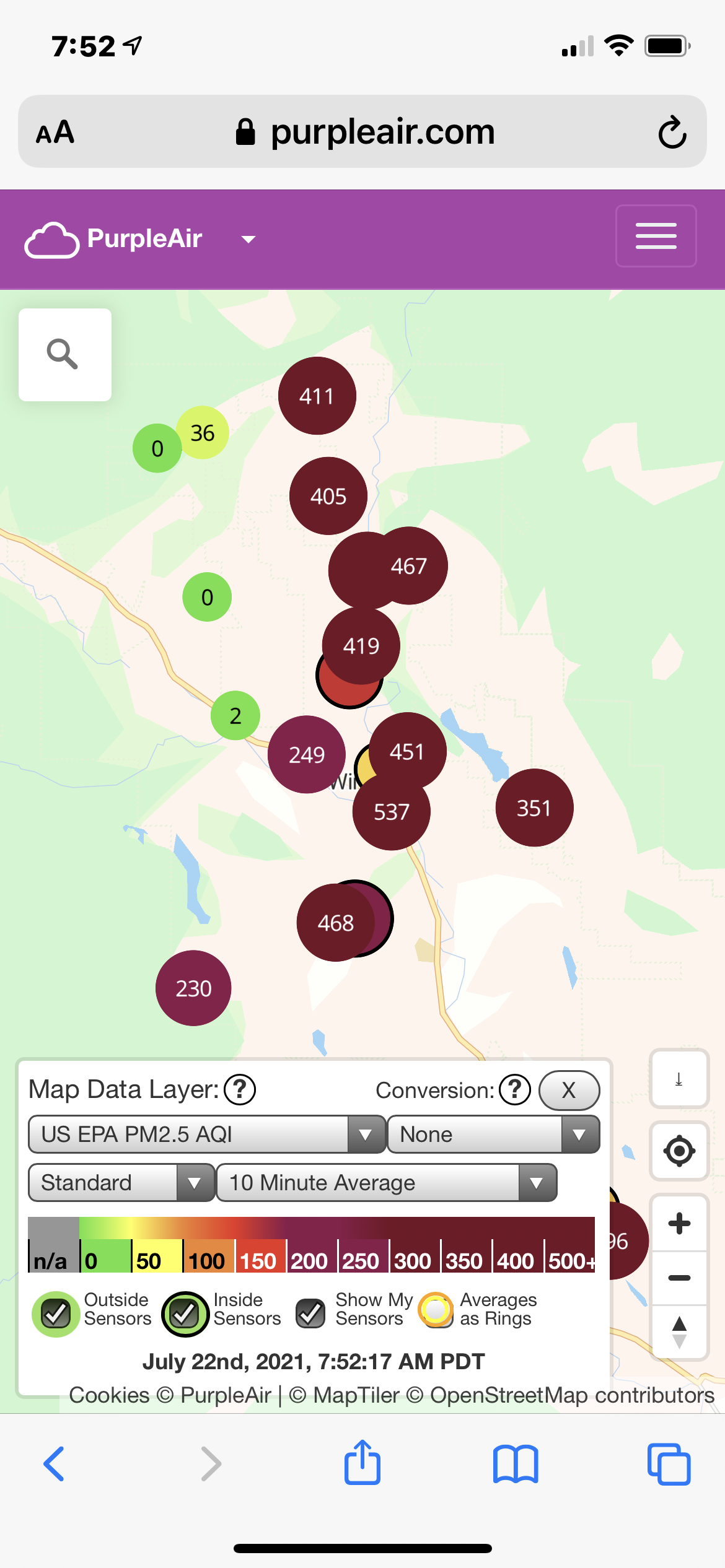 Air Quality: Expect similar to worsening smoke conditions today as were experienced yesterday. Unhealthy to hazardous conditions will occur in the Upper Methow Valley east of Mazama from early morning to mid-afternoon. Mazama should be mostly clear with periods of haze in the afternoon. Communities further down valley may experience unhealthy to very unhealthy air. Smoke has slopped over into the Okanogan Valley. Tonasket and Omak may experience unhealthy air throughout the day. Oroville is receiving heavy smoke from Canada and the Methow Valley. Chelan may start having hazy skies today. Conditions should improve overnight but smoke will return Friday morning.