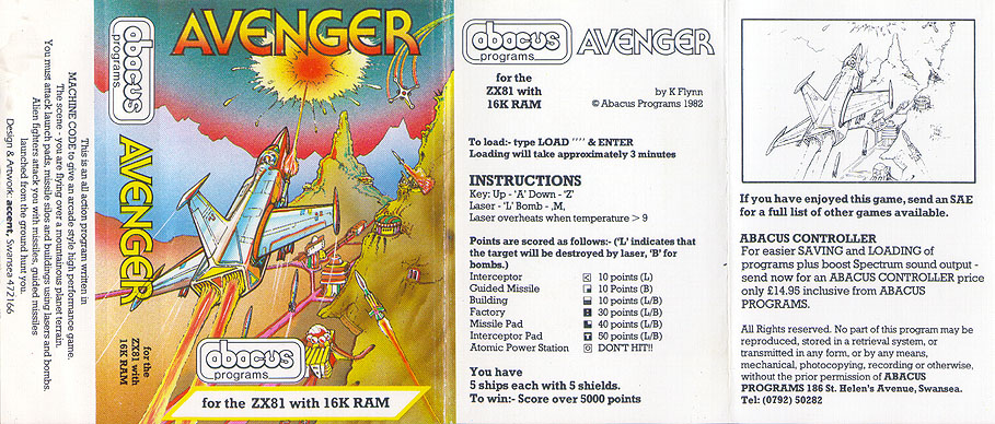 Avenger is my favorite video game for the Timex Sinclair 1000 ZX81
