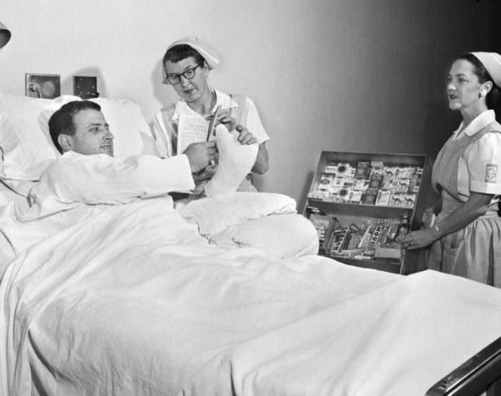 As absurd and counter-productive as it may seem, hospital patients could purchase packets of cigarettes from their hospital beds during this time. They could even smoke in their hospital rooms if they wanted to!