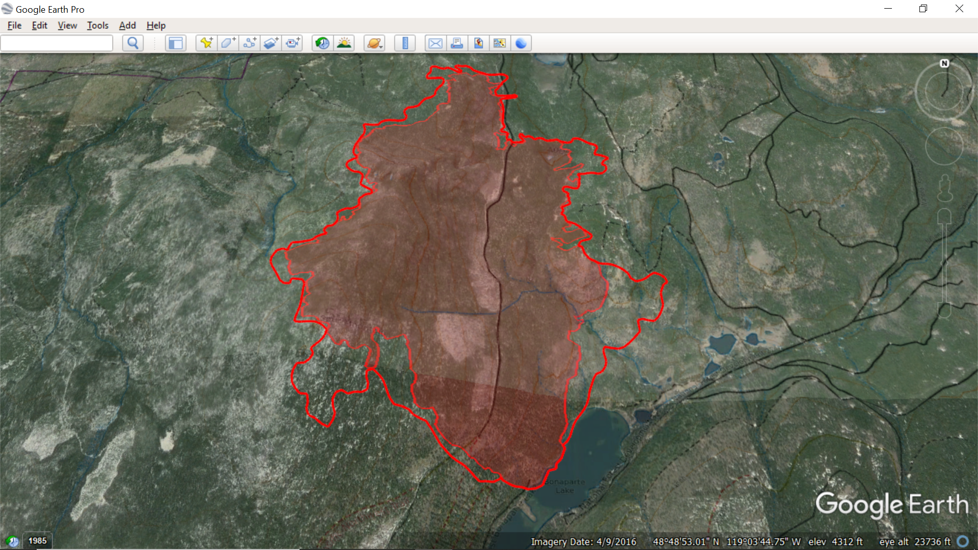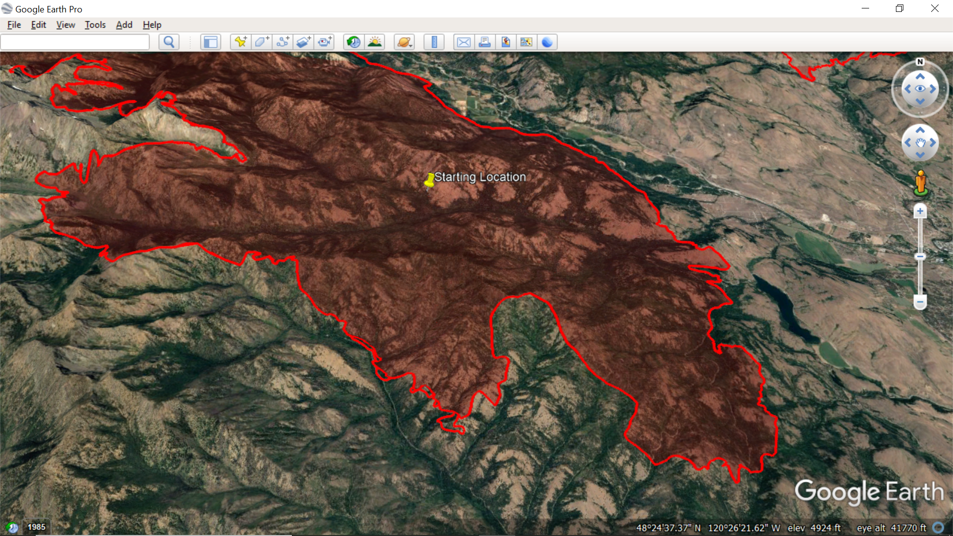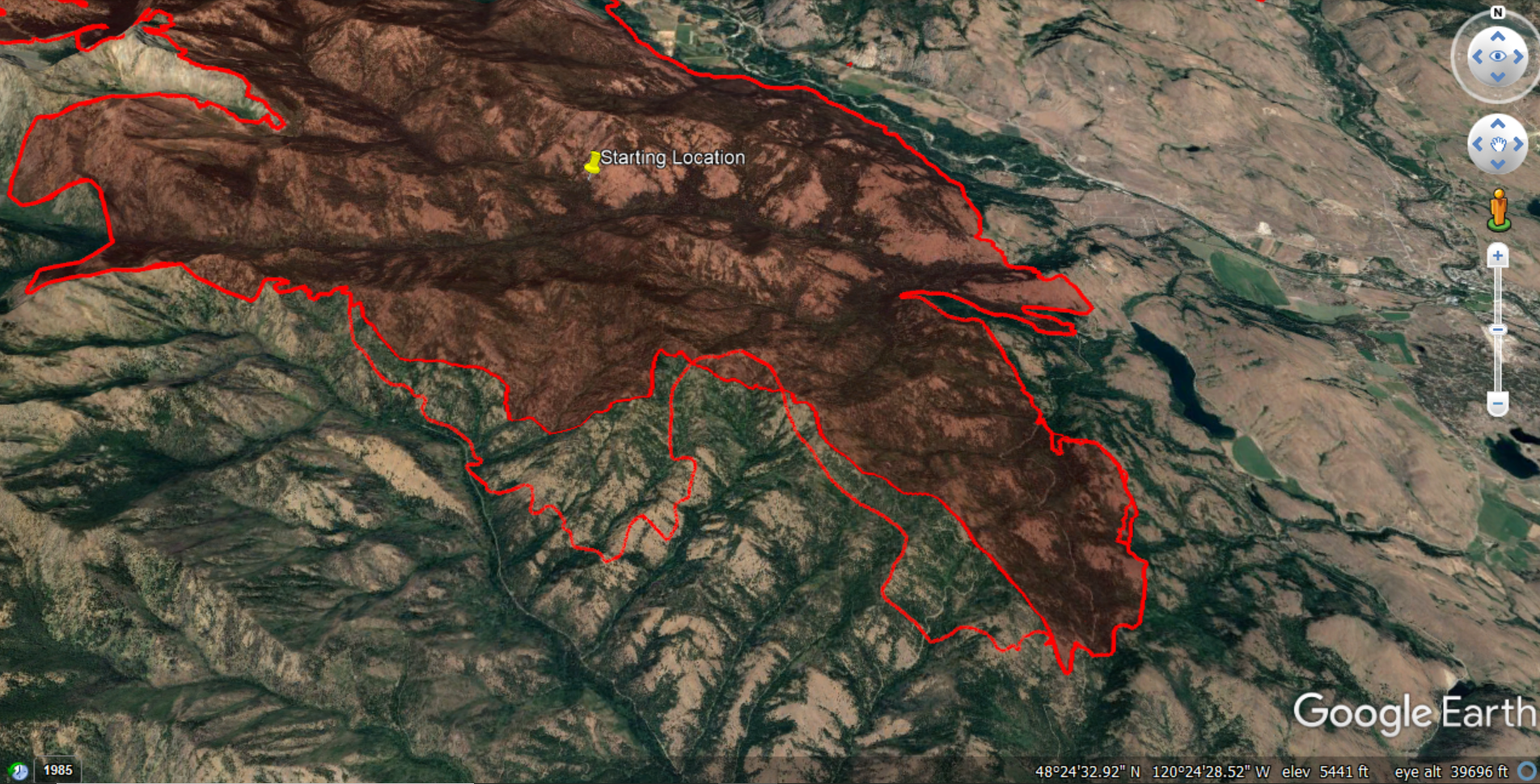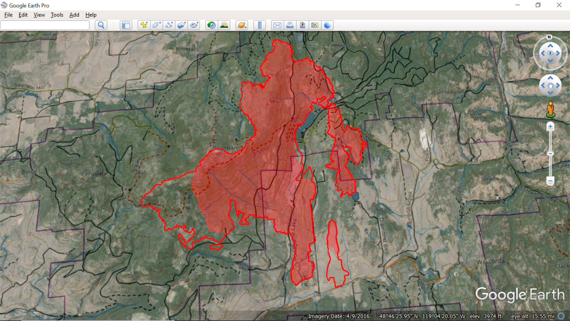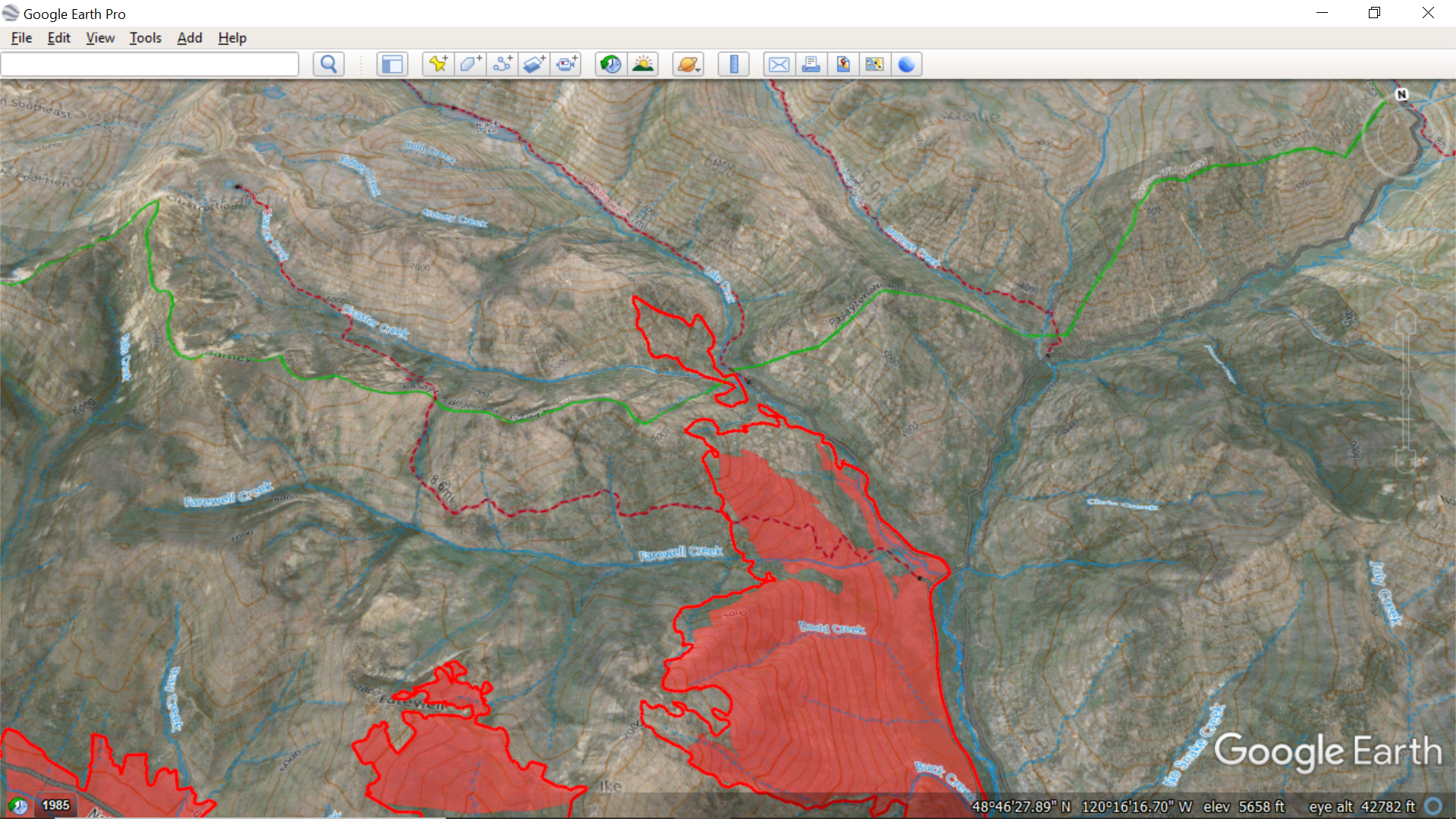 All current wildfires (larger filesize - 12.8 mb)... Previous perimeter files were selected for Methow Valley and small filesize