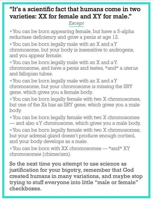 That is why Trump's directive is so bogus, the writers didn't know the science so now it's fair game to call every man Ms/her/she