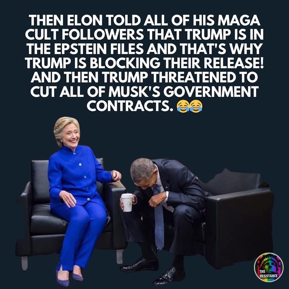 "UPDATE - This started out being entertaining - but now it is deadly serious. Musk has the information to destroy Trump and his presidency. Musk already dropped the bomb that Trump is in the Epstein files. Trump has threatened to cut Musk's government contracts, and Musk posted he is already decommissioning his spacecraft. Steve Bannon has chimed in that he "strongly believes" Musk is an "illegal alien" who should be deported.