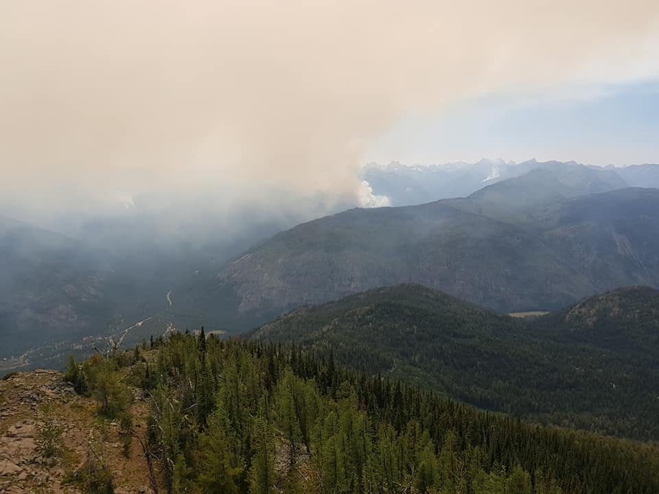 The Methow Valley was blanketed in smoke much of the day limiting use of aerial resources. Heavy lift helicopters were able fly in the late afternoon and provide assistance to firefighters with water bucket drops.