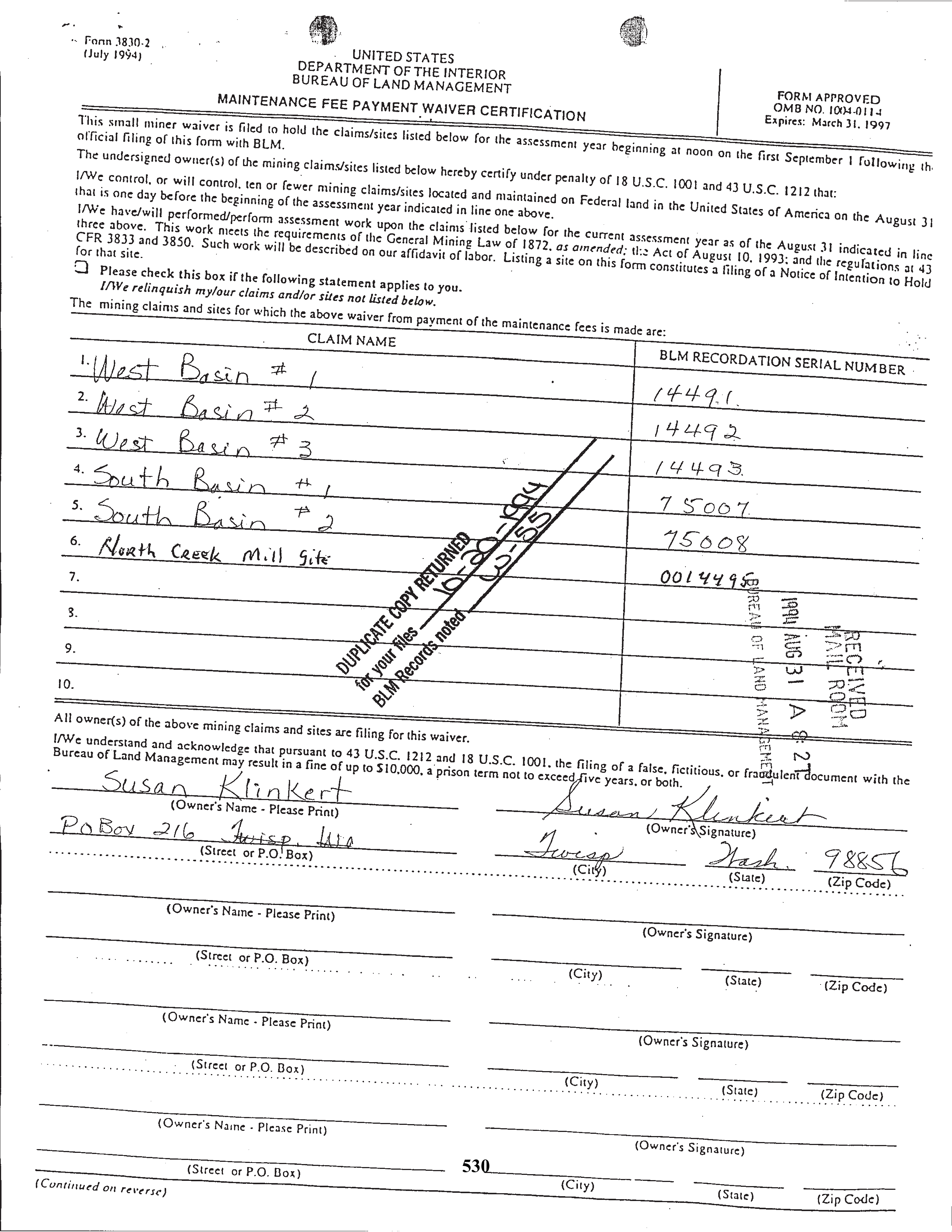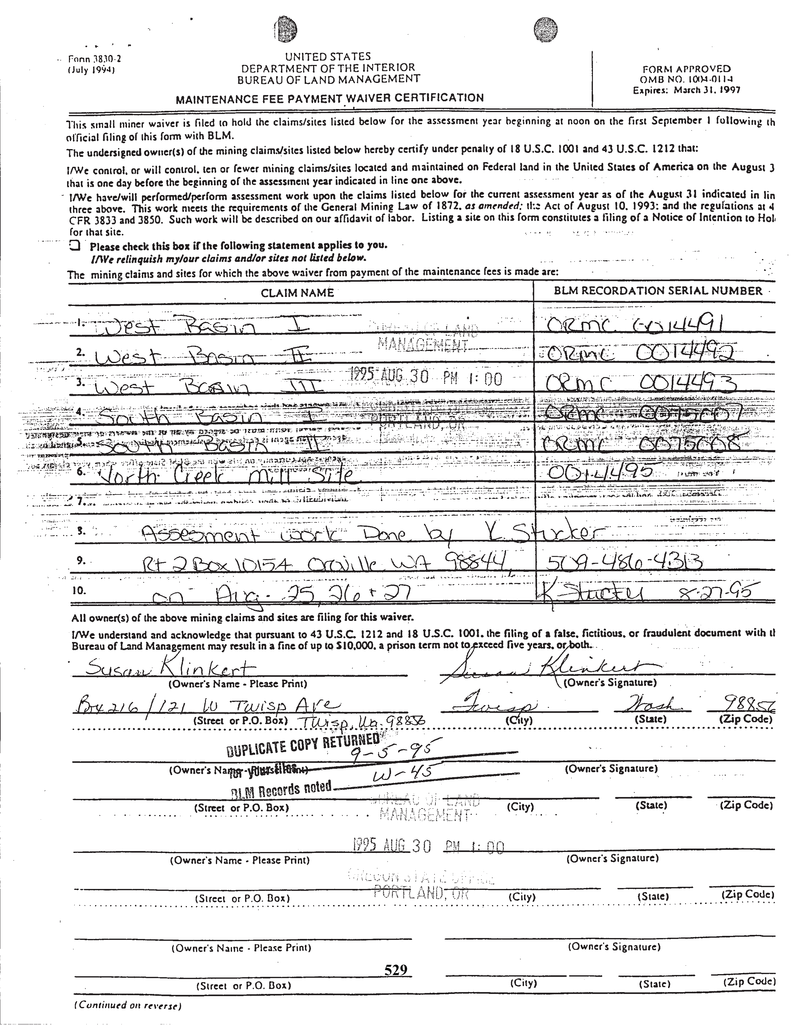 TREASURE map FRANK AUSTIN gave me his mining papers TUNNEL map Wolverine Plan of operation QUIT CLAIM DEED Twisp River Org --My Active Mineral Claim