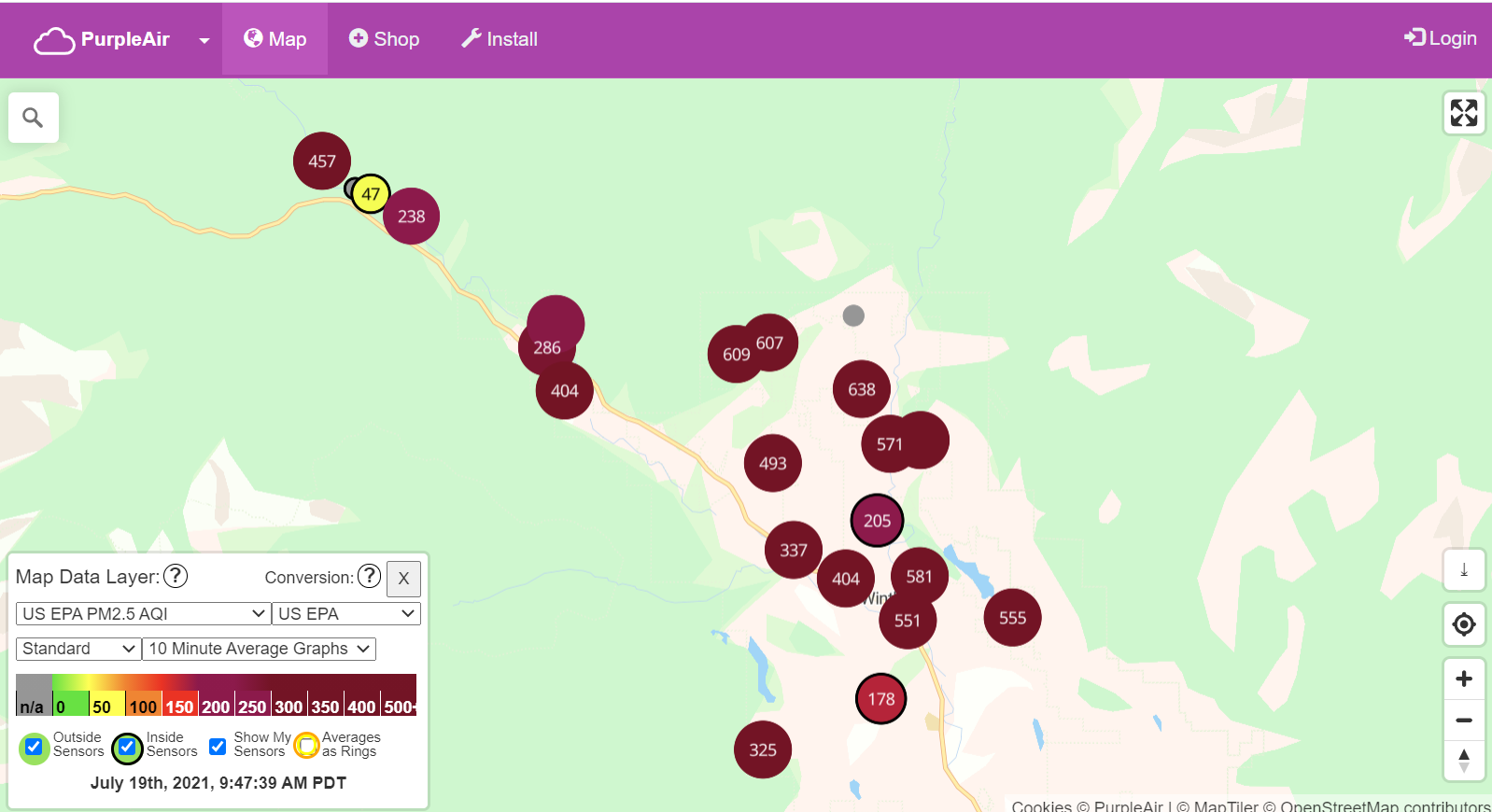 Air Quality: Expect similar smoke impacts today in the upper Methow Valley. Increased impacts will occur in the lower Methow Valley, and the Columbia River Drainage toward Omak. Smoke will settle into the valleys overnight resulting in unhealthy to hazardous air in Winthrop and Mazama between 4:00 am to mid-afternoon. Mazama impacts may be worse today due to increased fire activity yesterday and a forecasted west wind this afternoon. Twisp may experience a shorter period of unhealthy air than Winthrop but should still have unhealthy air in the