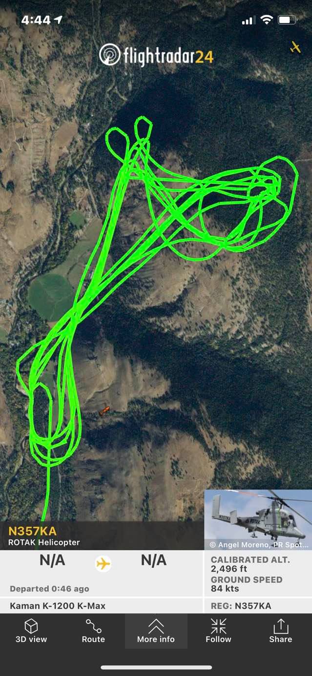 Afternoon update... One helicopter making water deops on Cub Creek Fire...