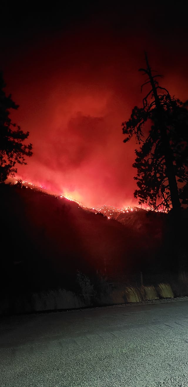 I headed down lost river road to Mazama for gas and found this! Fire is burning over the top of Sandy Butte and down the hill. Can literally hear the fire from Mazama trailhead.
