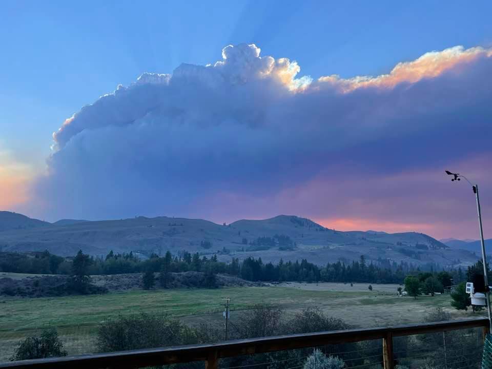 Mazama (Cedar Creek) fire plume…. Fire progressing east towards Wolf Creek drainage.