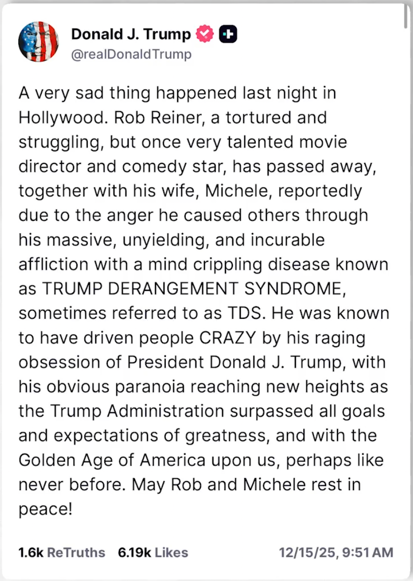 There can be no doubt that despite medications Trump's dementia is progressing at a more rapid pace. His post on Truth Social, which has been verified, encapsulates his inability to offer empathy much less the character to see beyond his own perception of victimhood.