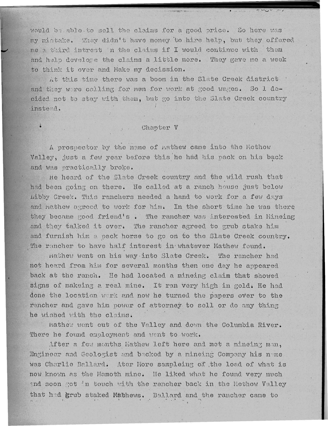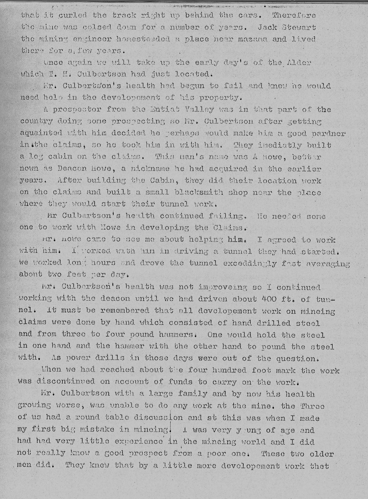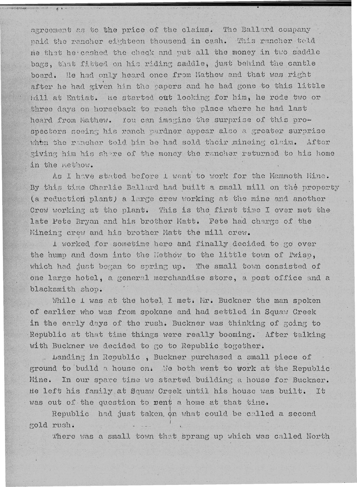 BAK COUNTRY MINES by Harvey Austin This is the diary Harvey kept as he worked the mines at the end of Twisp River Road.