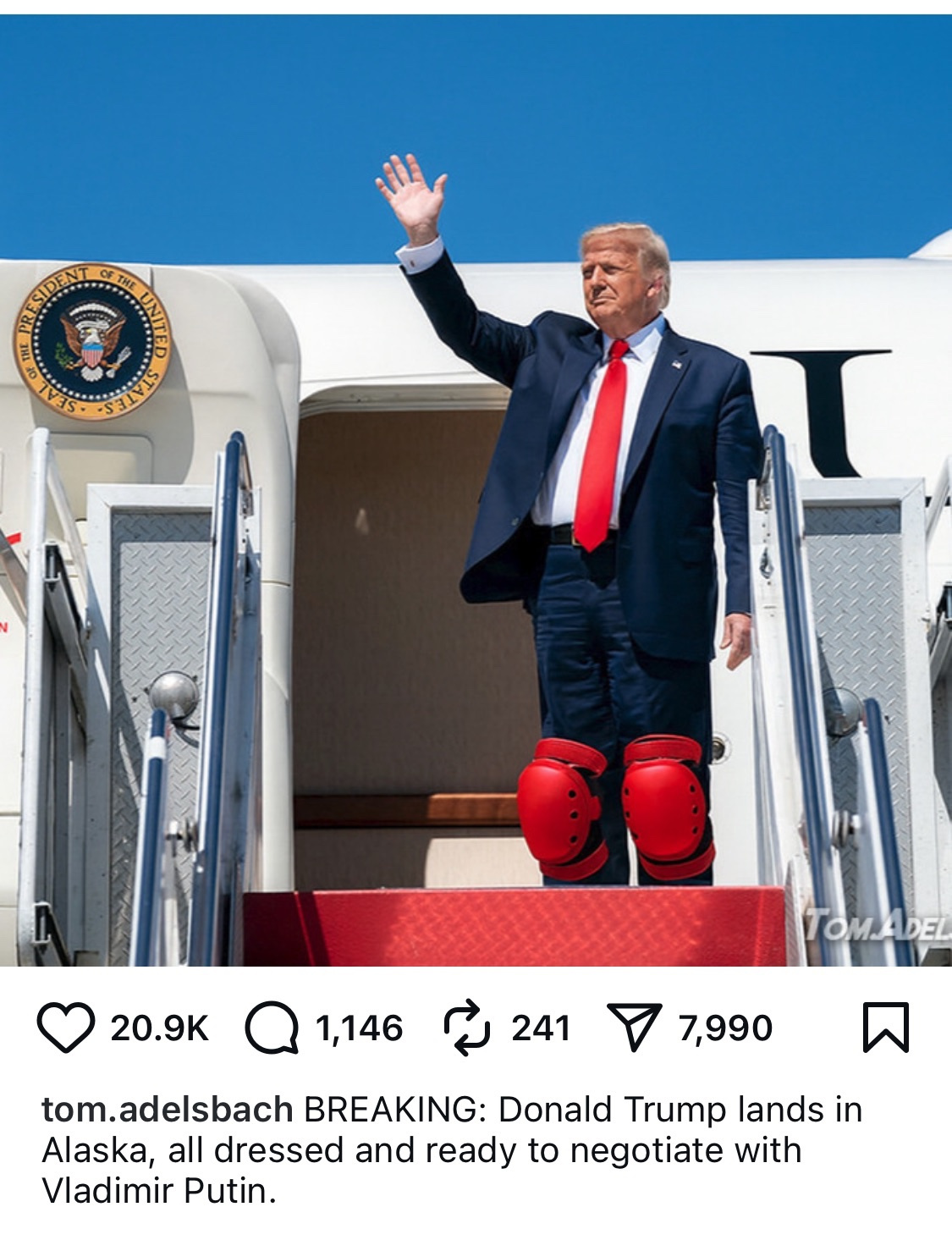“America is at a shameful low point. Donald Trump rolled out the red carpet, staged an Air Force flyover, and kissed the ring of a thug dictator in Vladimir Putin. Yet when our actual allies, leaders who have stood shoulder to shoulder with us for generations in war and peace, in trade and tourism, in every way imaginable, arrived at the White House today, Trump did not even bother to greet them.
