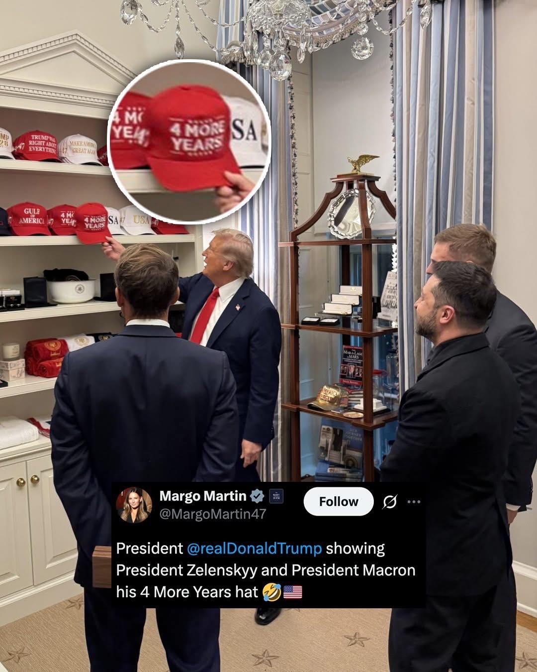 Here - the REAL leaders of the free world are shown the hat collection owned by our own FELON pea-brain persnident….