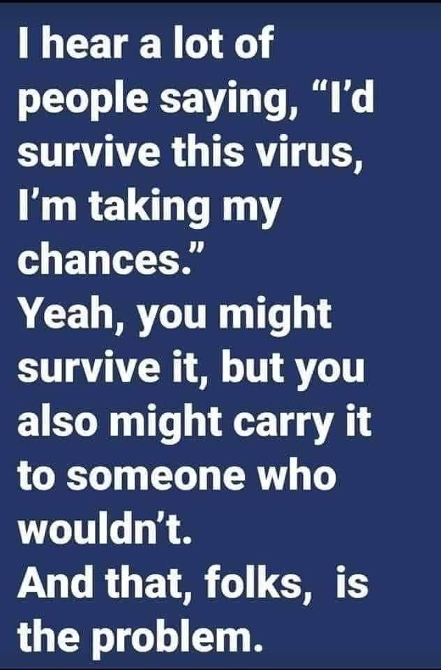 It’s ignorant and hyperbolic and very misleading, so pretty normal for keyboard warriors. I choose not to go too far down the rabbit hole with certain people, many years responding to crazy people claiming some medical malady has befallen them but is not backed by any medical science. My real frustration with that particular individual is when he stated I should be run out of my 24 year professional career because I don’t subscribe to his particular medical nonsense and then mocked me and my brother and sister professionals who have dedicated our lives to saving others ! If he knew anything about me and my fellow front line workers (and nurses and WSP etc) this is really a tragic outcome from a ignorant power hungry governor who has no elections left so is seeing how far people can be pushed just to boost his bonofiedies for a administration job at a fed level. Useful idiots are a normal part of many political debates but when performing real damage to so many they are very aggravating!
