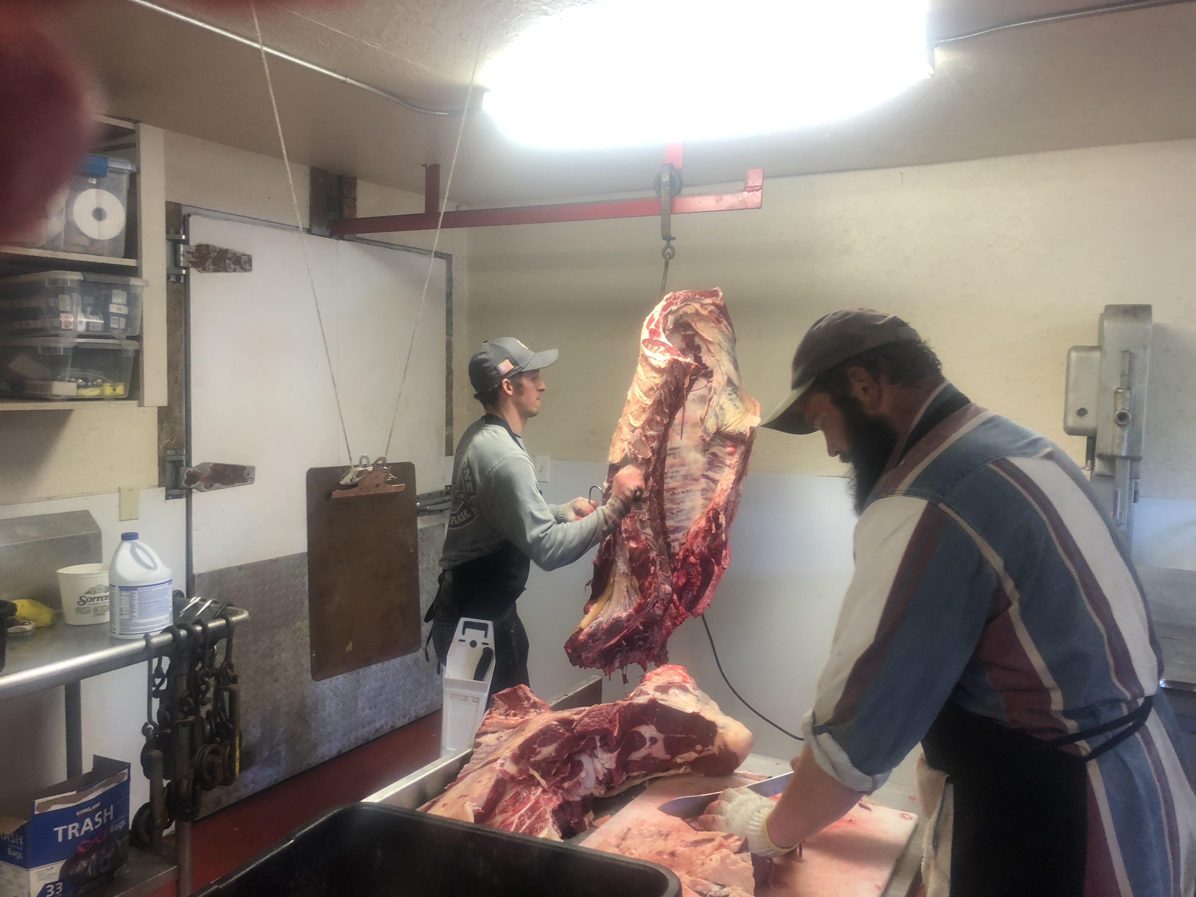 We do all the processing right here in our own custom meat shop which is certified with the Washington State Dept. of agriculture. All the processing is done by professional butchers with many years of experience. All the meat is cut to the customers request and double wrapped and labeled.