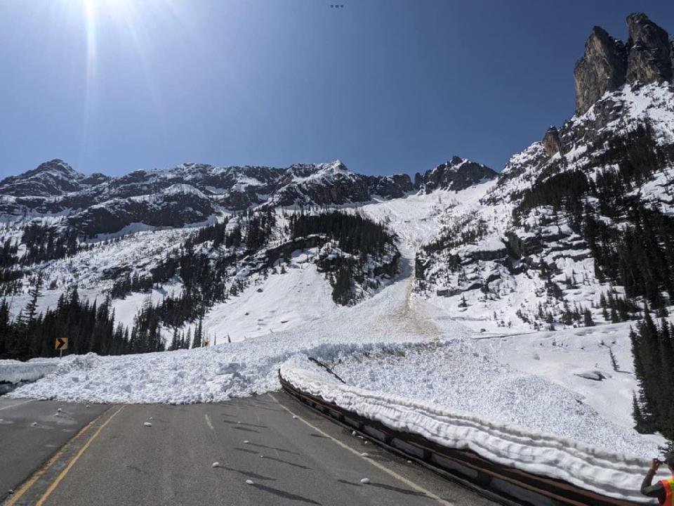 Here is why that avy warning was issued. You can see the first avy was already partially cleared and the one behind it waiting to be fully cleared. No way that would be survivable especially since most bicycle Riders don't carry Avalanche transceivers and shovels, standard equipment for Backcountry Travelers.