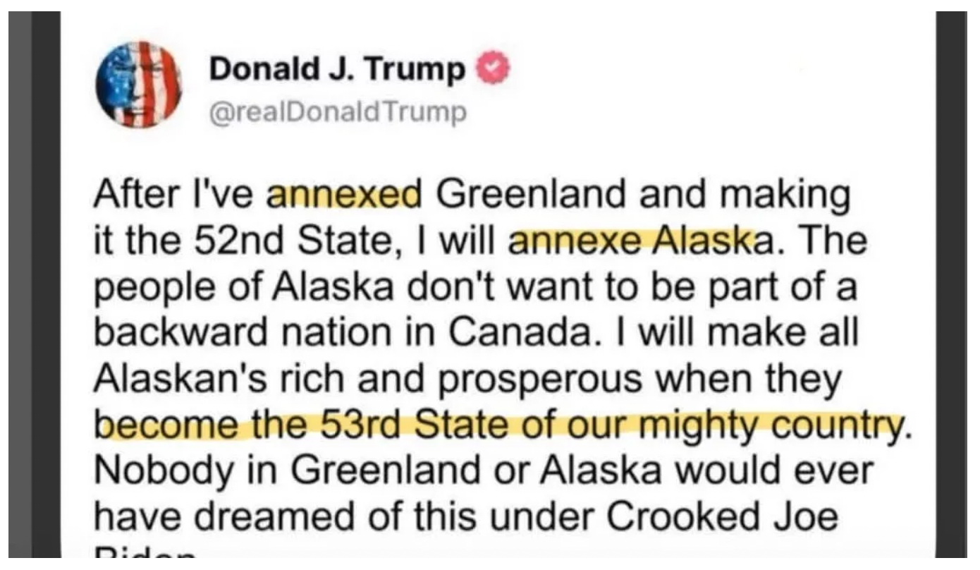 Somebody should tell the MAGA goons that Alaska is a already a state. Or maybe not and Alaska can quietly slink away and avoid the embarassment.