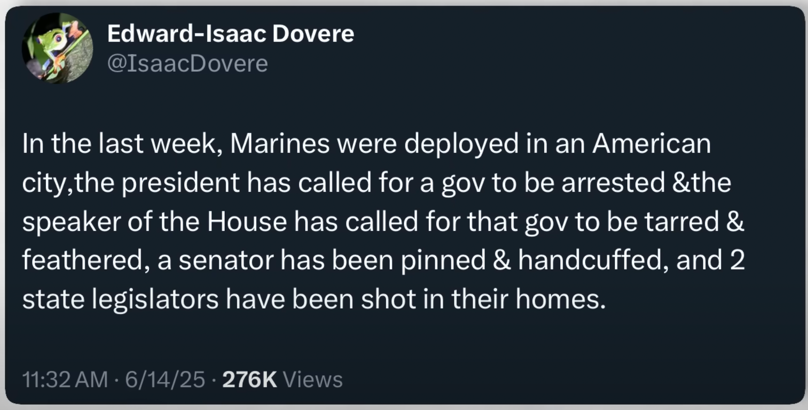 The deployment of the National Guard and Marines, the use of masks by ICE agents to hide their identities, and the sheer scale of enforcement activity are disgraceful and deeply disturbing. These tactics don’t reflect the values of a just or democratic society. They’re meant to intimidate, to silence, and to divide.