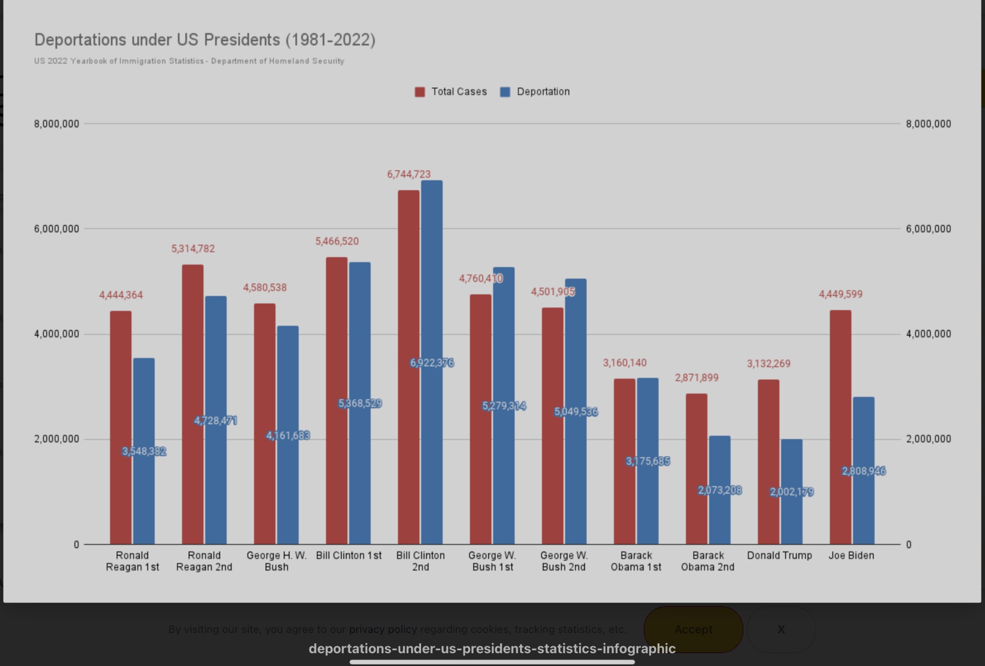 To be fair, Biden's deportation numbers were higher because it counted a lot of people being turned away at the US-Mexico border. And now most people are afraid to go there so those numbers are a lot lower.
