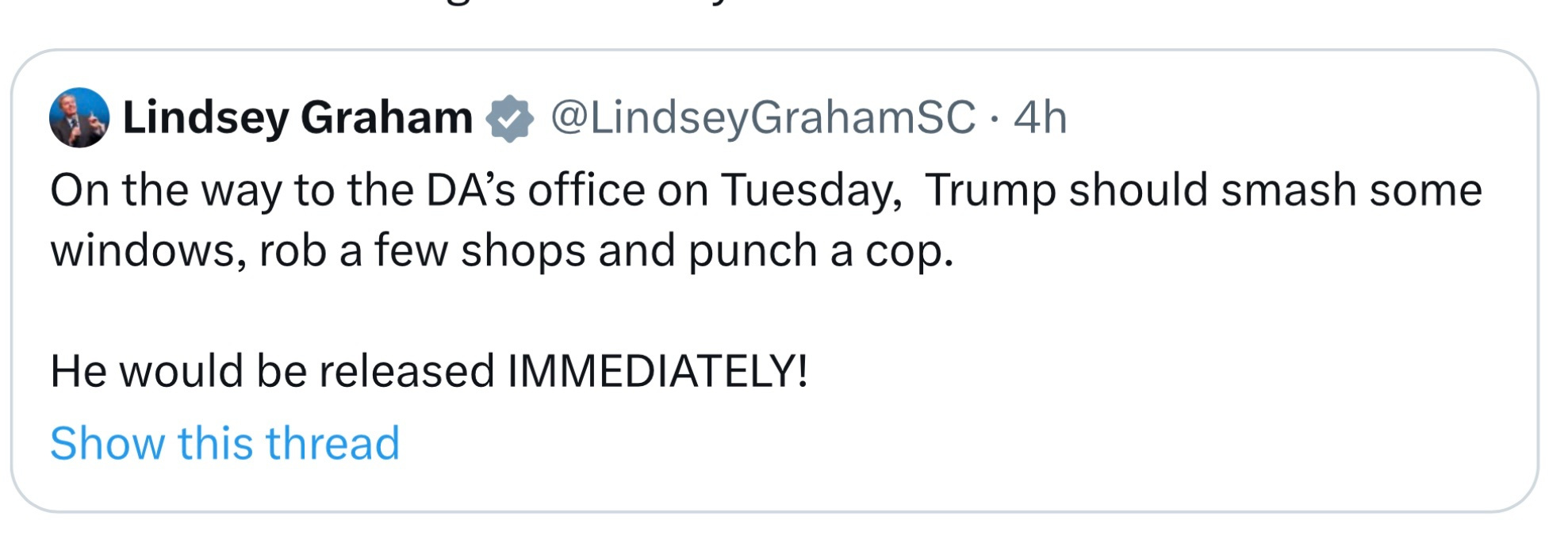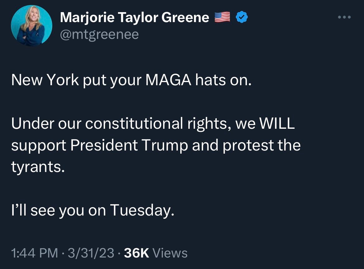 At a time where violence is not just in the air but being brandished by the likes of Boebert, MTG, Graham they are guaranteeing there will be mayhem. And all to protect the liar and his lies. This is exactly the example of why liars must be held accountable when they break the law.