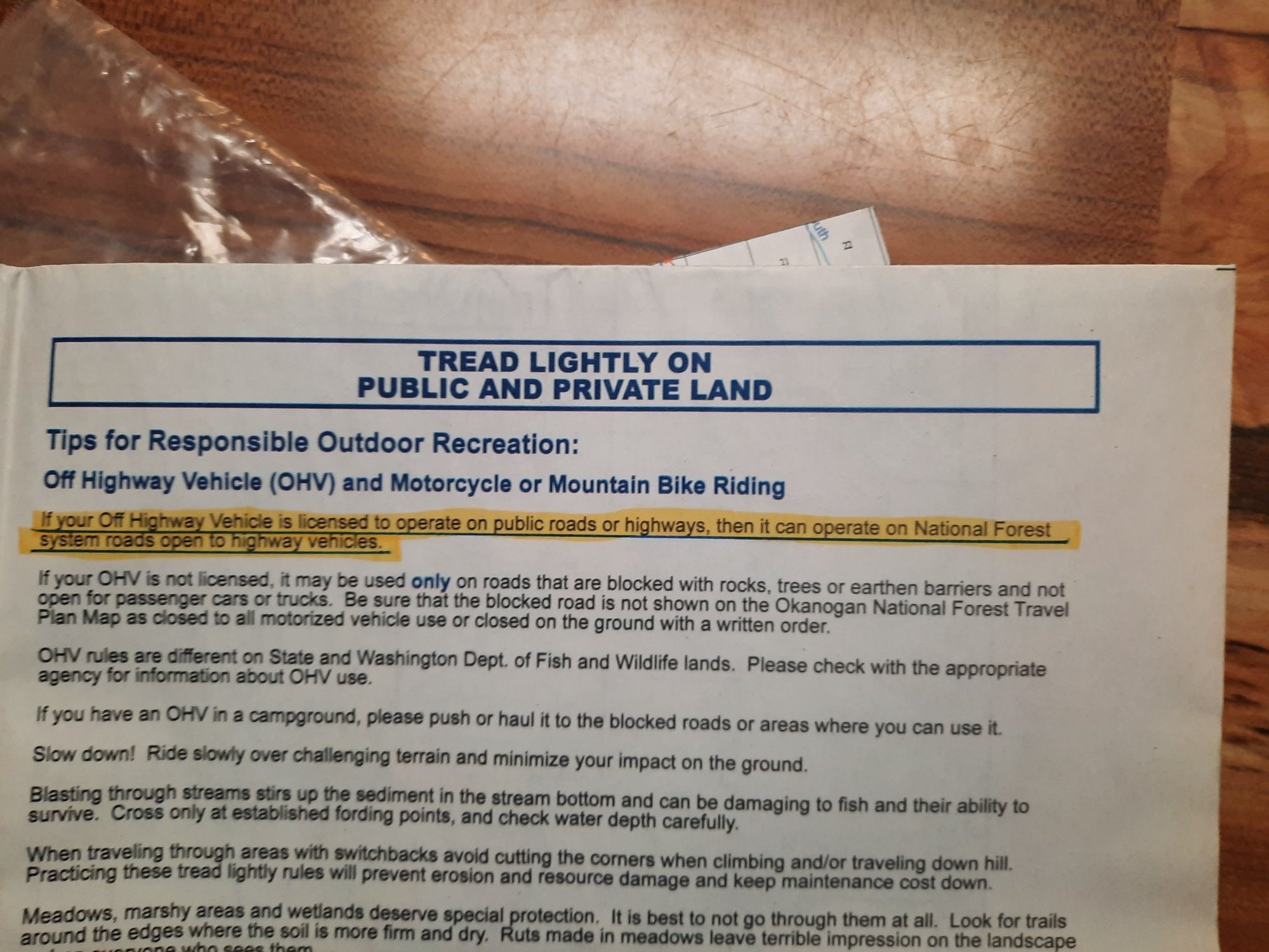 However, under the current Okanogan National Forest Travel Plan ,and I quote,